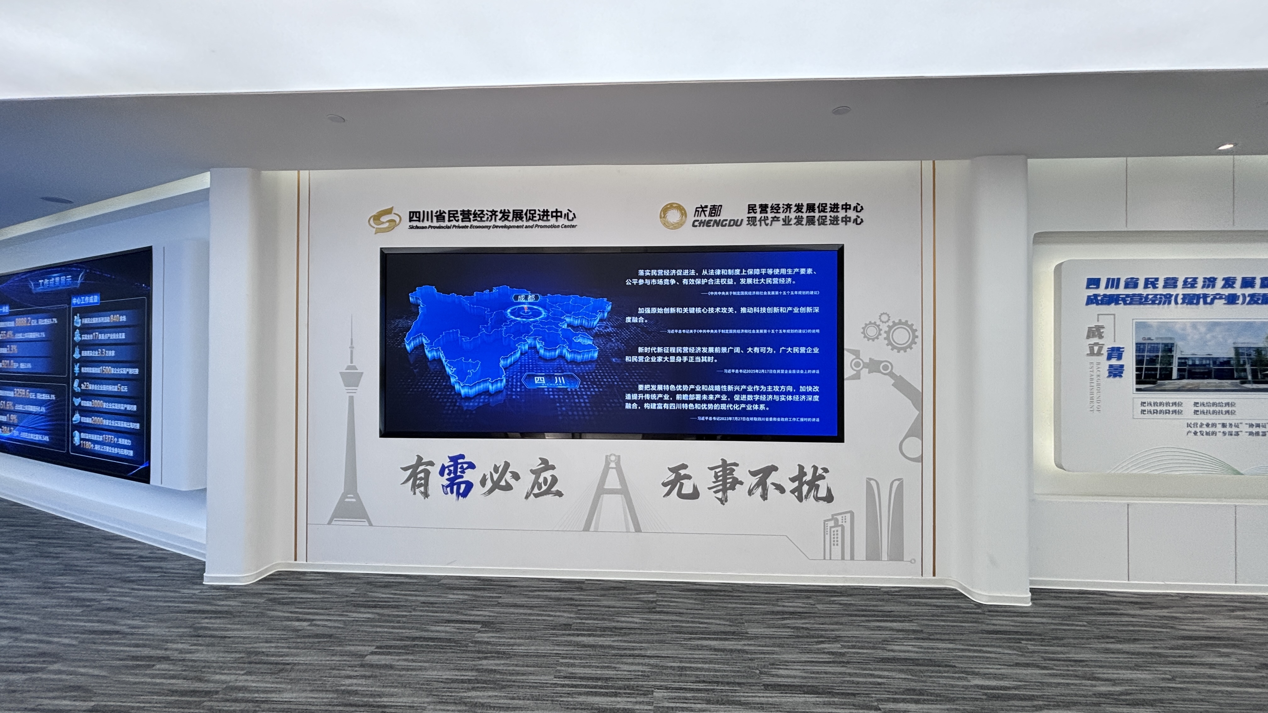 此外,在创新服务方面,帮助民营企业用好国家支持创新发展的各项政策,协助对接科技创新资源;在市场开拓方面,做好民间投资项目和民间资本招引,搭建民营企业和国有企业合作对接平台,围绕重点产业链发布场景清单、项目清单,推动上下游企业合作共赢;在要素保障方面,搭建要素对接平台,依托“川易贷”平台和科创企业与投资基金对接活动等,助力企业融资;在法务维权方面,中心依托四川省民营企业维权服务平台,广泛收集、跟踪督办民营企业诉求;在政策服务方面,通过“处长讲政策”活动、惠企政策工具包等,帮助民营企业更好地了解和运用惠企利企政策措施。