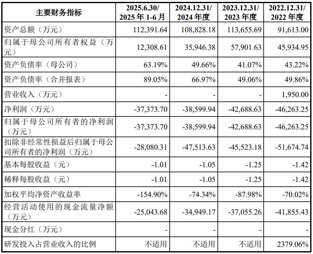 报告期内公司持续亏损,2022年度、2023年度、2024年度及2025年1-6月,归属于母公司股东的净利润分别为-4.63亿元、-4.27亿元、-3.86亿元和-3.74亿元。公司持续亏损主要系公司自设立以来持续专注于创新药的开发,该类项目研发周期长、不确定性高、资金投入大。